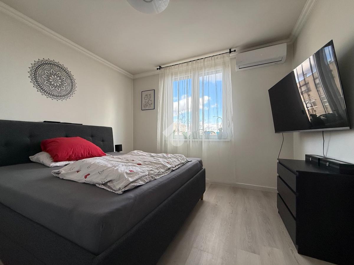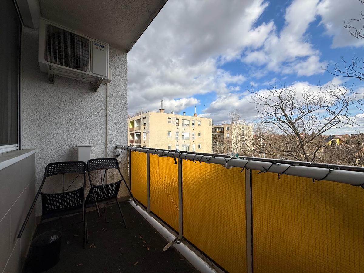 Eladásra kínálunk egy 64 m²-es, 3. emeleti, csúsztatott zsalus, erkélyes lakást, amely ideális választás családoknak vagy pároknak. Az ingatlan 2021-ben teljes körű felújításon esett át, így műszakilag és esztétikailag is korszerű, azonnal költözhető állapotban van. A lakás három külön nyíló szobával rendelkezik, az erkély pedig kellemes plusz életteret biztosít a mindennapokhoz. A komfortérzetről hűtő-fűtő klíma gondoskodik egész helyiség redőnnyel és szúnyoghálóval felszerelt. A modern konyha indukciós főzőlappal és mosogatógéppel ellátott, a beépített bútorok pedig esztétikus és jól kihasználható tárolási lehetőséget biztosítanak. A belváros könnyen elérhető 3 perc sétára található több buszjárat (152, 159 és éjszakai vonalak), így a közlekedés gyors és kényelmes. A környéken élelmiszerboltok, gyógyszertár, posta, piac, pláza, iskolák, óvodák és orvosi rendelők is megtalálhatók. Az ingatlan hitelre is megvásárolható. Díjmentes, bankfüggetlen hiteltanácsadásért, további információért vagy megtekintésért forduljon irodánkhoz bizalommal.